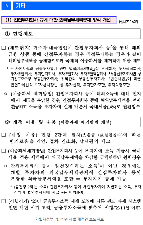 - 2021년 기획재정부의 세법 개정안에서 배당금 과세이연 제도를 변경하기로 결정